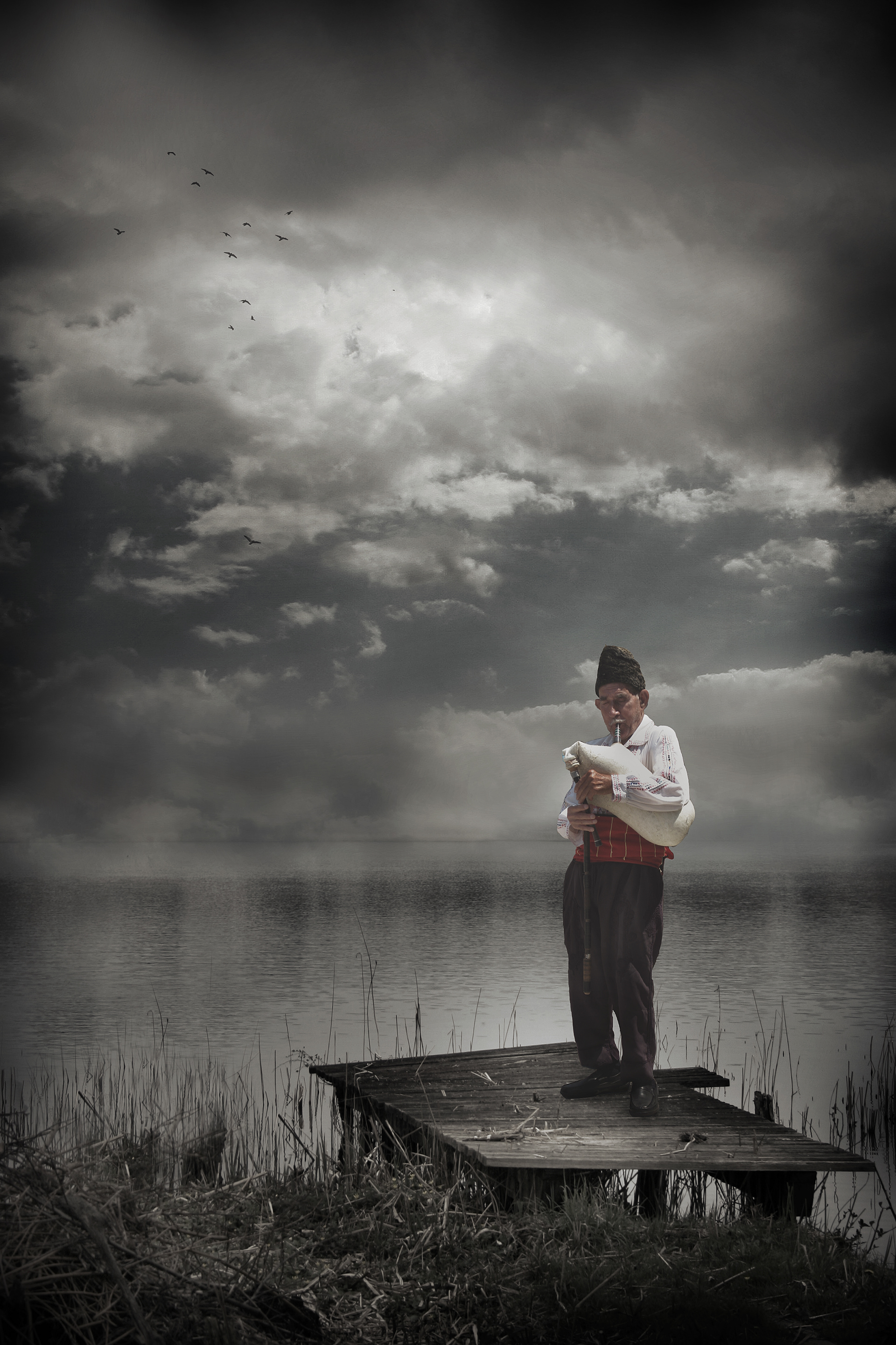 Old man with bagpipe